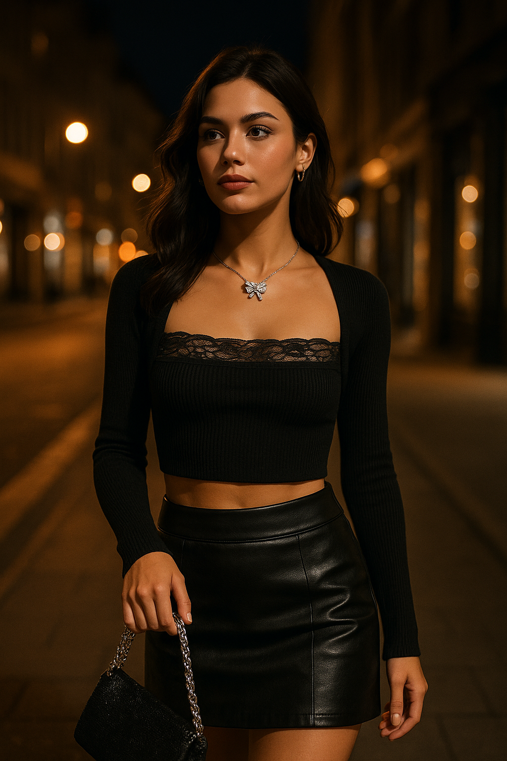 Top crop nero con dettagli in pizzo